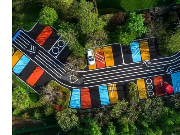 在杭州蕭山區某商業綜合體的地下停車場改造項目中,道路施工隊再采用傳統的道路施工方案基礎上有巧妙的運用紅藍雙色瀝青進行功能分區。紅色區域專門劃定為新能源車充電車位,藍色區域則標識無障礙車位。這種鮮明的色差對比,讓車主能夠迅速定位目標車位,大大減少了在停車場內徘徊尋找的時間??梢哉f彩色瀝青道路在停車場實現了功能分區與安全警示的完美融合